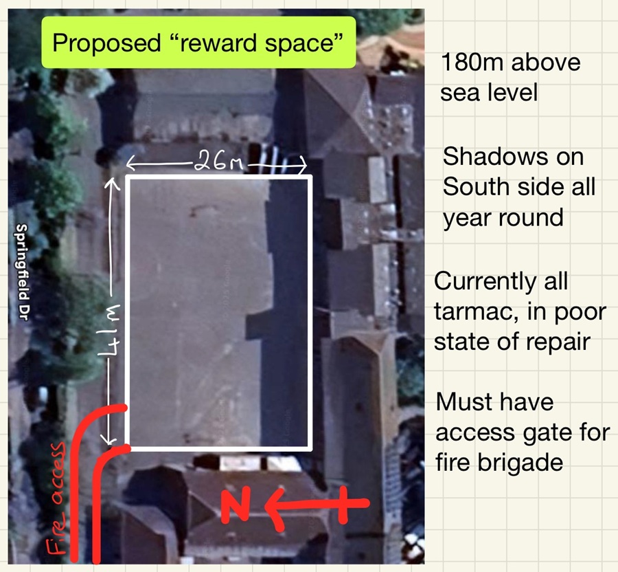 A school has been given a small sum of money and support offered from the local community to help develop a reward space for students to use on a rotation. The school has decided that this yard area is not used effectively and needs to be developed. Come up with a plan to present to a committee. Your plan should include: