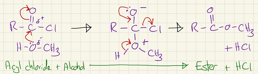 This is the mechanism for the reaction of an acyl chloride with an alcohol: