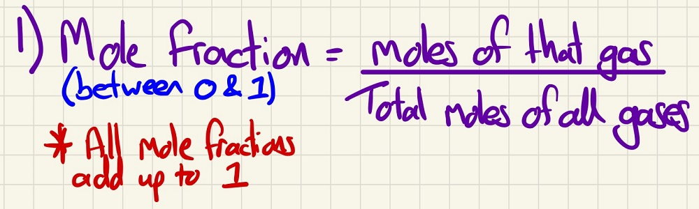 Firstly, we need to find out the "mole fraction" of each gas in the equation. Both reactants and products.