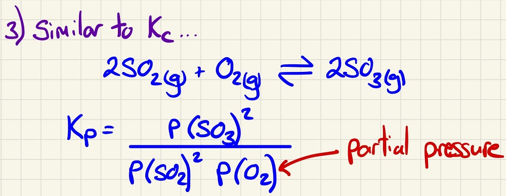 Alternatively, you may have some partial pressures and the value of Kp and need to find a missing partial pressure. This may then give you the total pressure in the system.