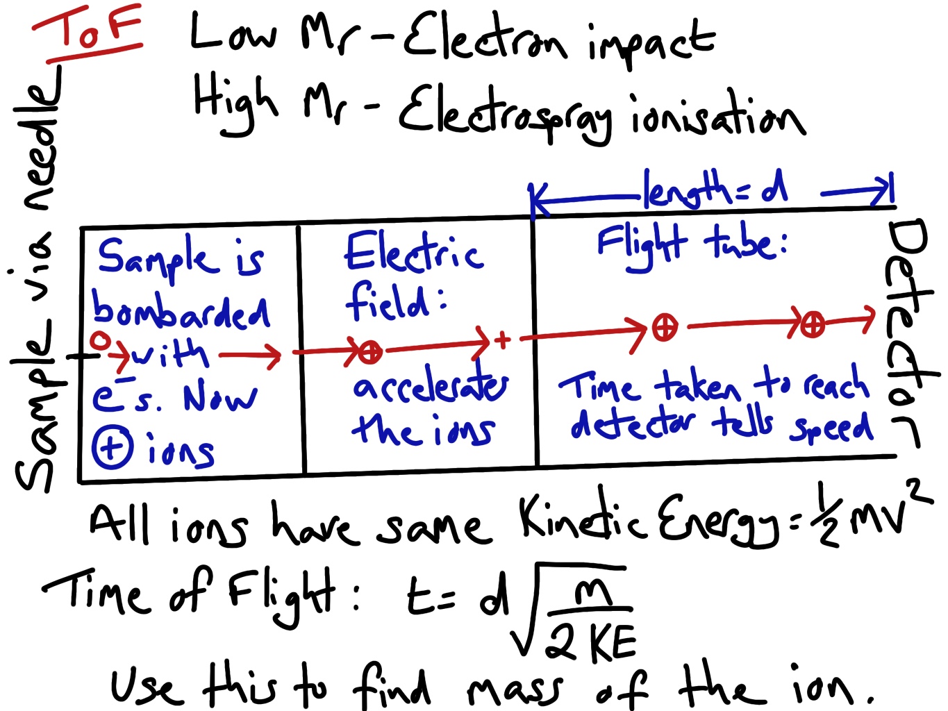 Time of Flight Mass Spectrometry: How does ToF work? What are the steps in the process and calculate information such as the kinetic energy of ions, relative abundance of isotopes and determine the relative atomic mass of a sample