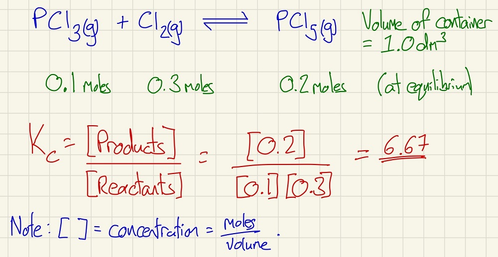 Below is a reaction at equilibrium. We are given the concentrations so need to work out the equilibrium constant for this reaction. Note that the constant is only for this temperature.