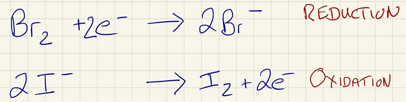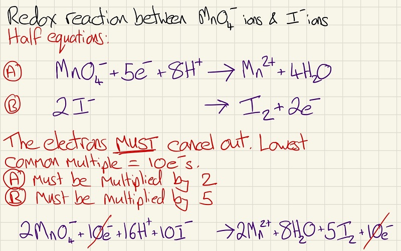 The next stage is a simple GCSE operation. Creating half equations to show a change in oxidation state. Ensure that you can identify oxidation and reduction too. Here are two very simple ones.