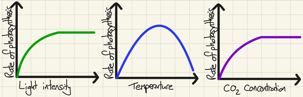 • Light intensity - no matter how much you add, if every chloroplast is working to its full capacity, no amount of extra light will increase the rate.
