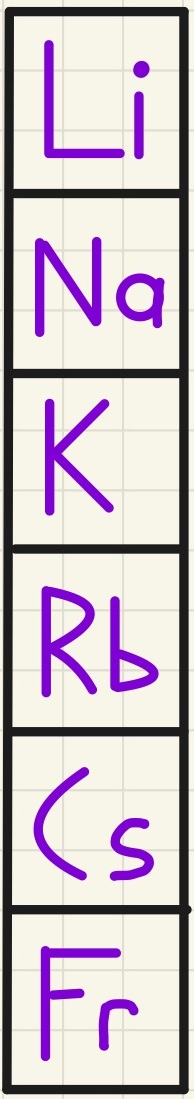 These all have similar chemical properties as they have 1 electron in their outer shell, however, as you go down the group, they become more reactive. The increase in reactivity is because as the atoms get bigger (further down the group, they have more electrons so more shells to fit them into), the outer electron is further away from the positive nucleus that attracts it. The electrons in between "shield" this attraction so there is more shielding in bigger atoms so the outer electron is more easily lost.