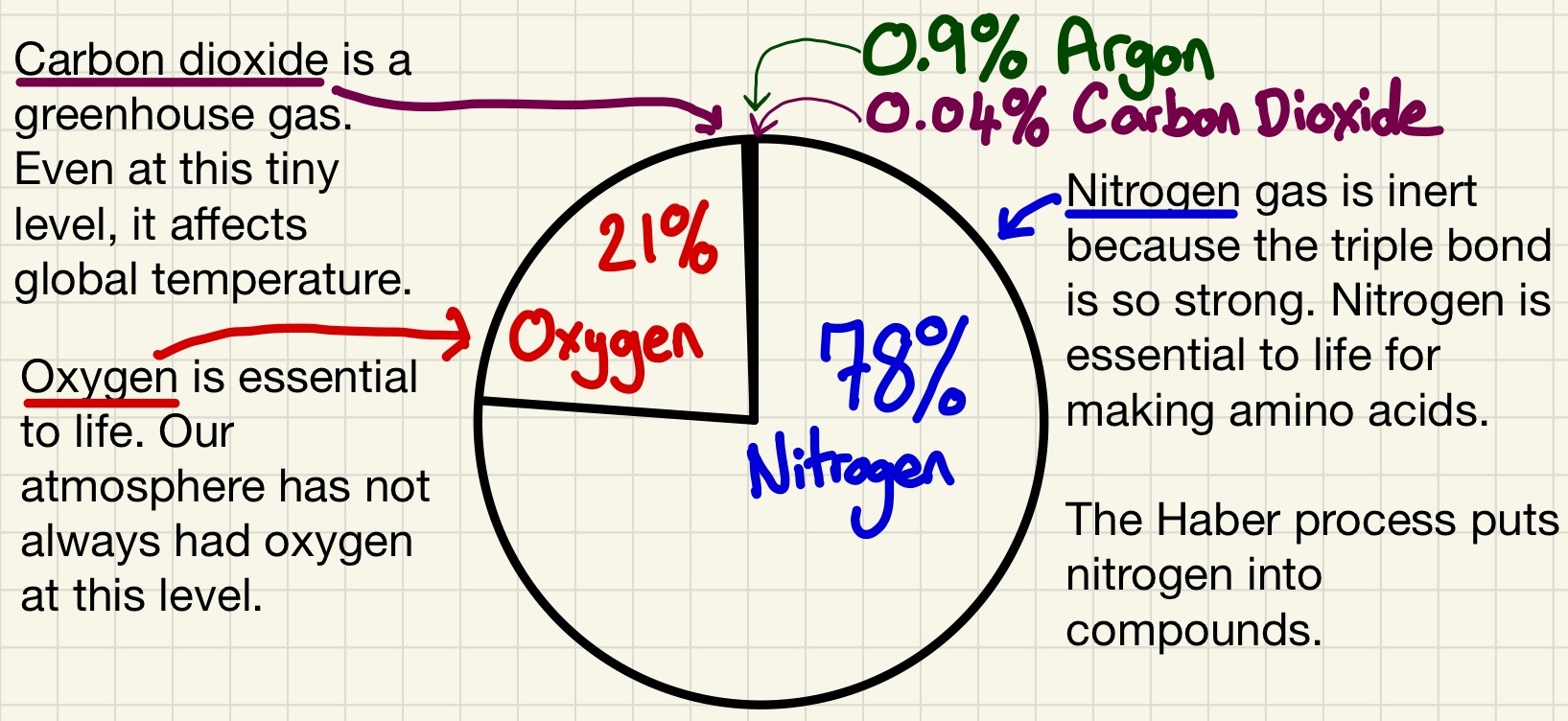 Our atmosphere is 78% Nitrogen, 21% Oxygen and 0.04% Carbon Dioxide. It has not always had this composition and we will look at how it has changed over time. We believe that the atmosphere was mainly carbon dioxide and water vapour when the Earth first formed. This slowly evolved into today's atmosphere over 4 billion years with processes including cooling, photosynthesis and geological processes like volcanoes.