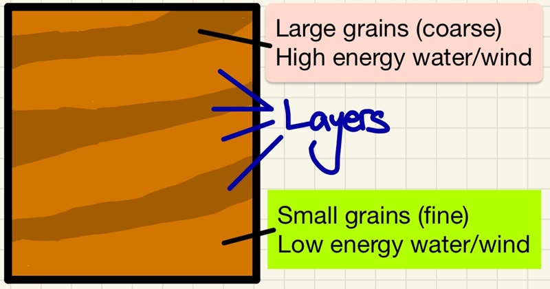 The first rock type that we see is the Sedimentary rock. Once you recognise them you will spot them in road cuttings, outcrops and small rocks and pebbles in rivers, streams and at the beach. Sedimentary rocks have layers and are made from grains, some rains are large and some as so small that you need a microscope to see them. Sedimentary rocks form in a process that involved breaking apart an existing rock and moving it to a new place and making a new rock.