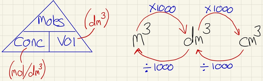 When a solid is dissolved in water, you need to be able to calculate its concentration in g/dm3.