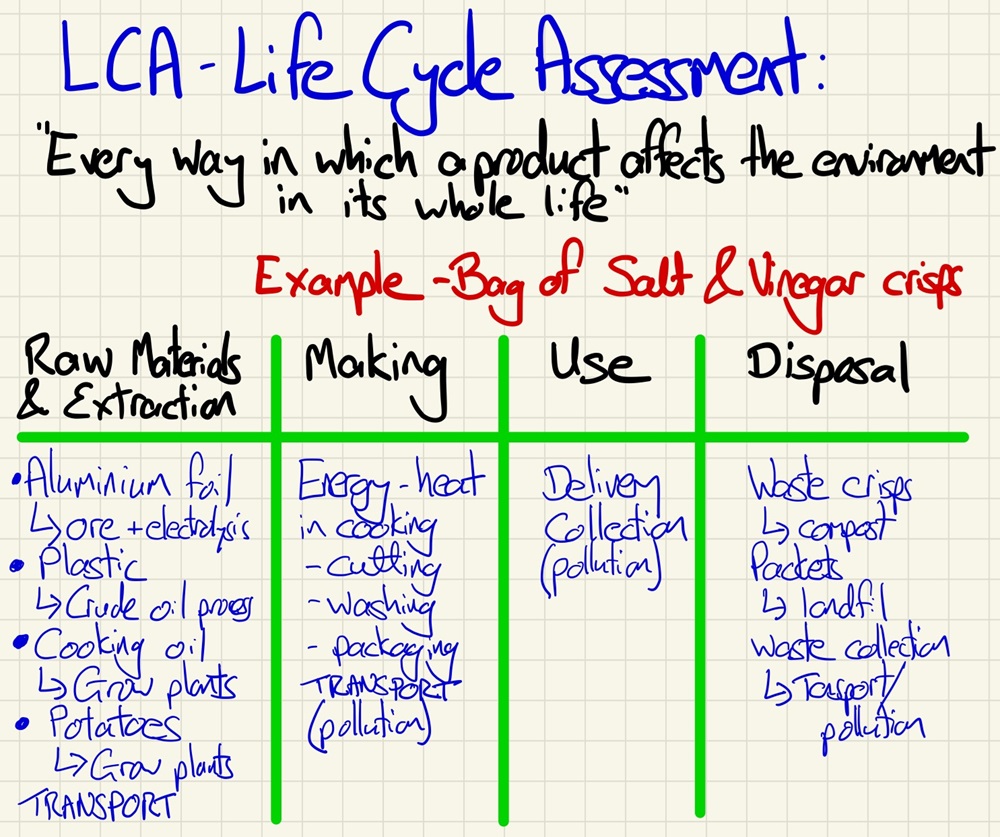These are defined as the analysis of the potential environmental impacts of products or activities during their entire life from the extraction of the raw materials to the processing of any associated waste. It is really important to consider this full range as there may be little impact on the environment while the item is in your custody, however, there may have been a huge impact during the processing of raw materials or the waste my not be recycled and will not biodegrade. These LCAs are available to monitor processes used by businesses but also to allow us, the consumers to find out more about products and services before we buy/use them. This way, we can make an ethical decision too.
