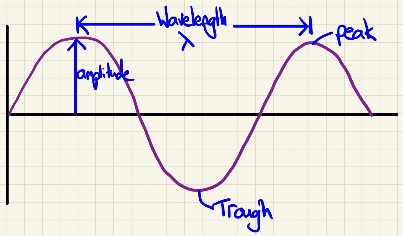 Check that you can identify and label: Amplitude, wavelength, peaks, troughs. You need to be able to calculate frequency (1/time period) and use: